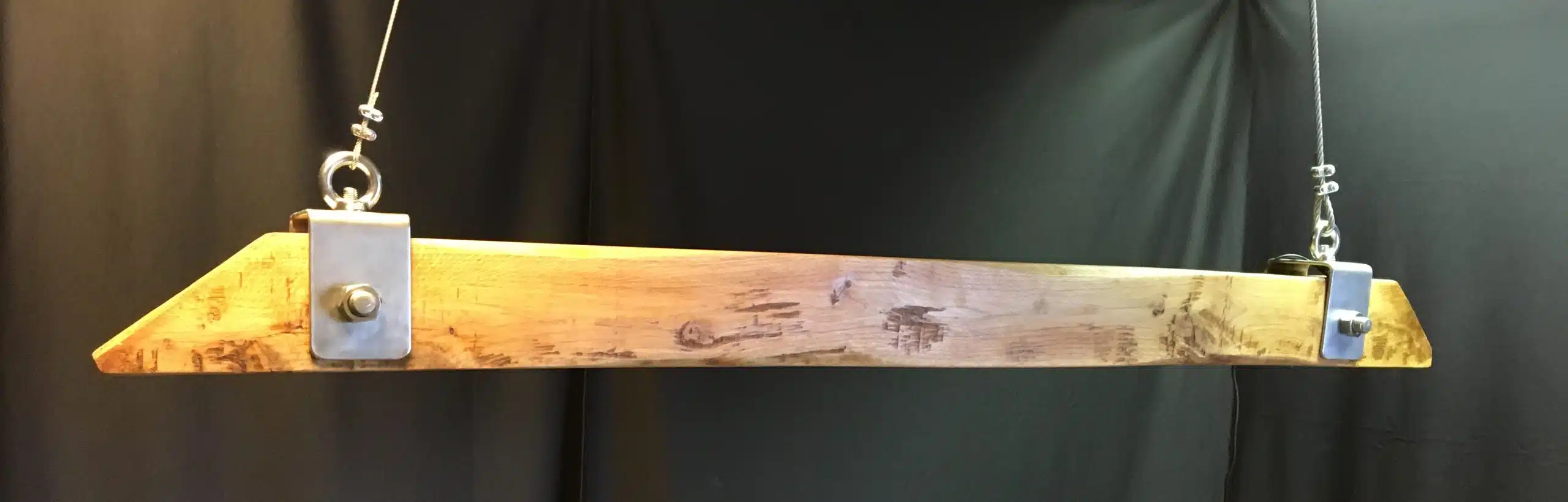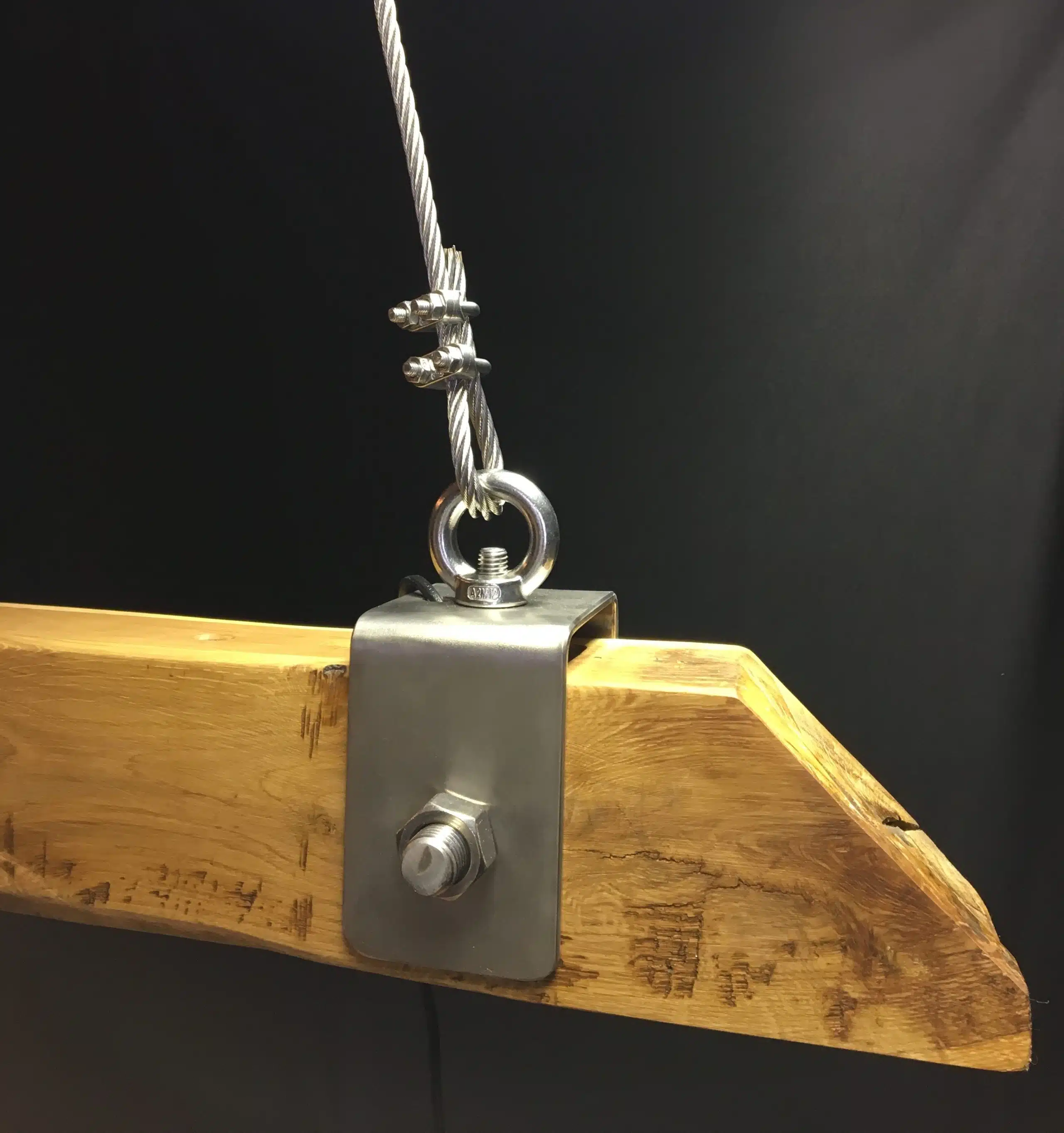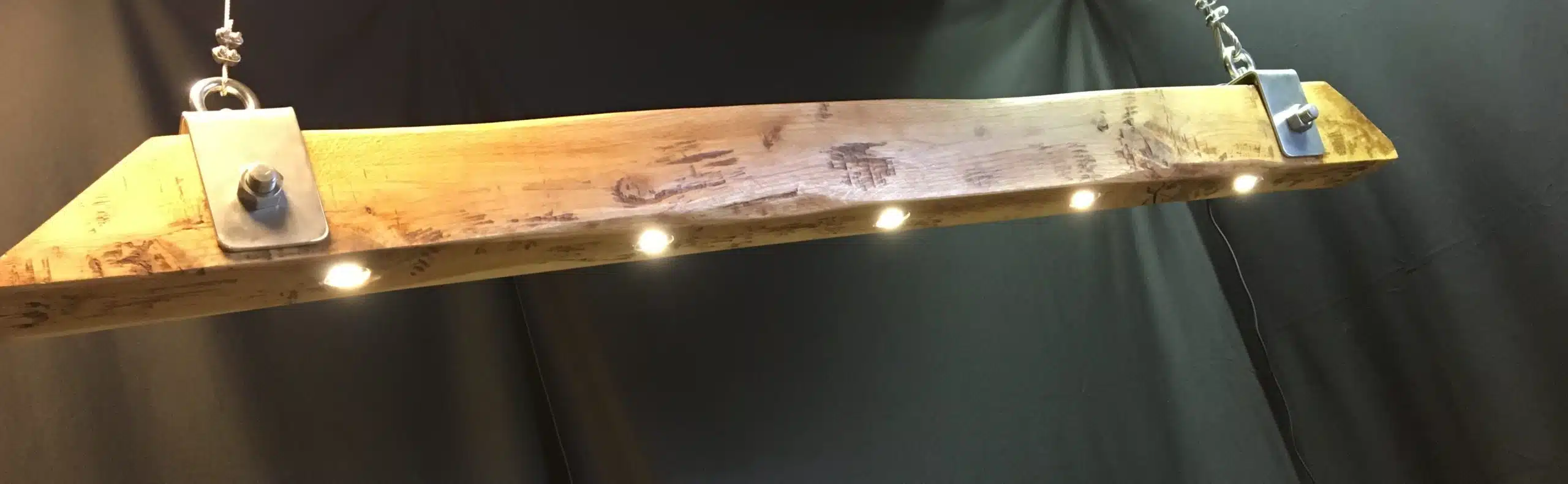 Deze lamp is gemaakt van een oud eiken schoor van een gebint in combinatie met RVS en hoogwaardige ledverlichting.