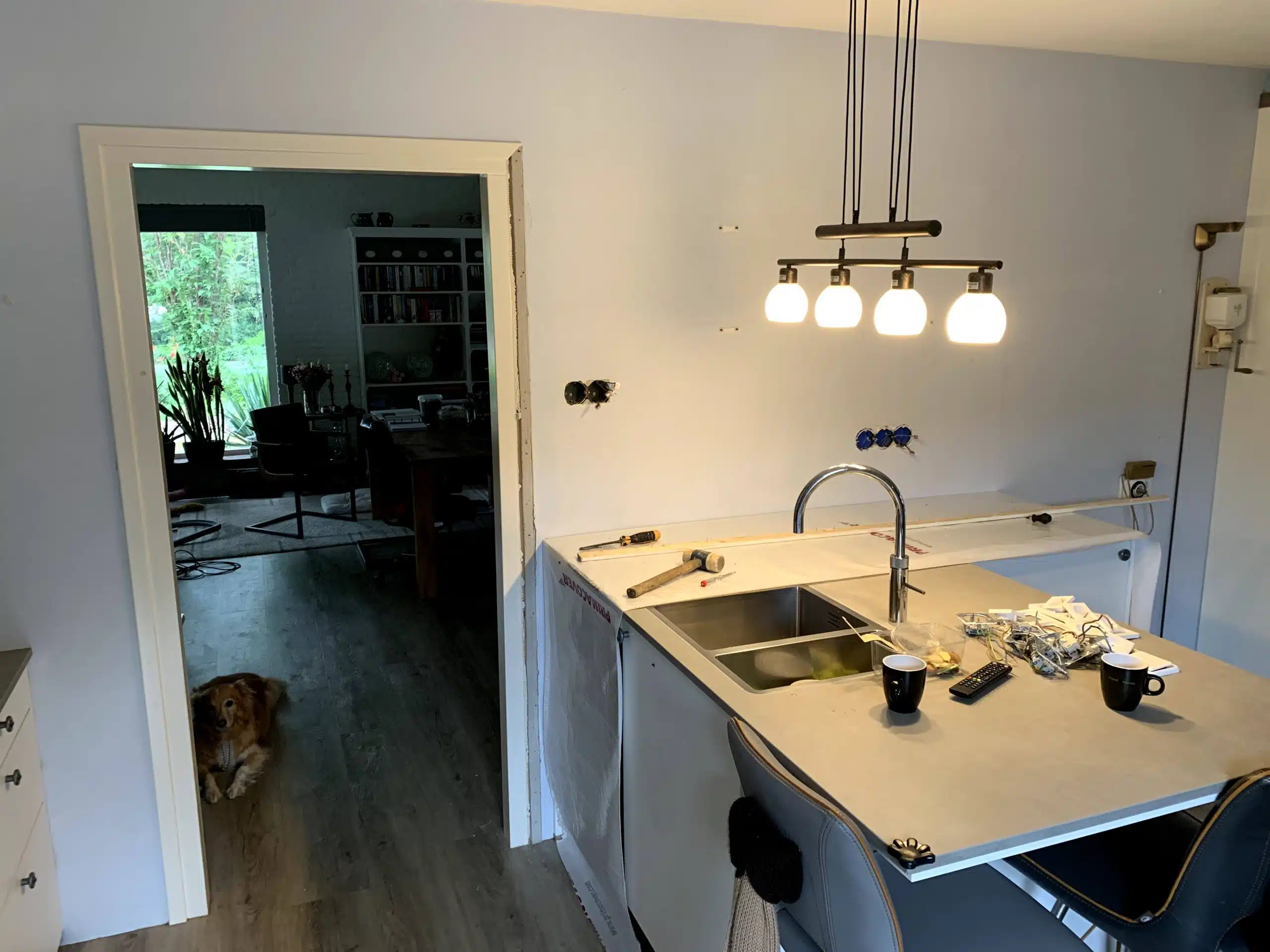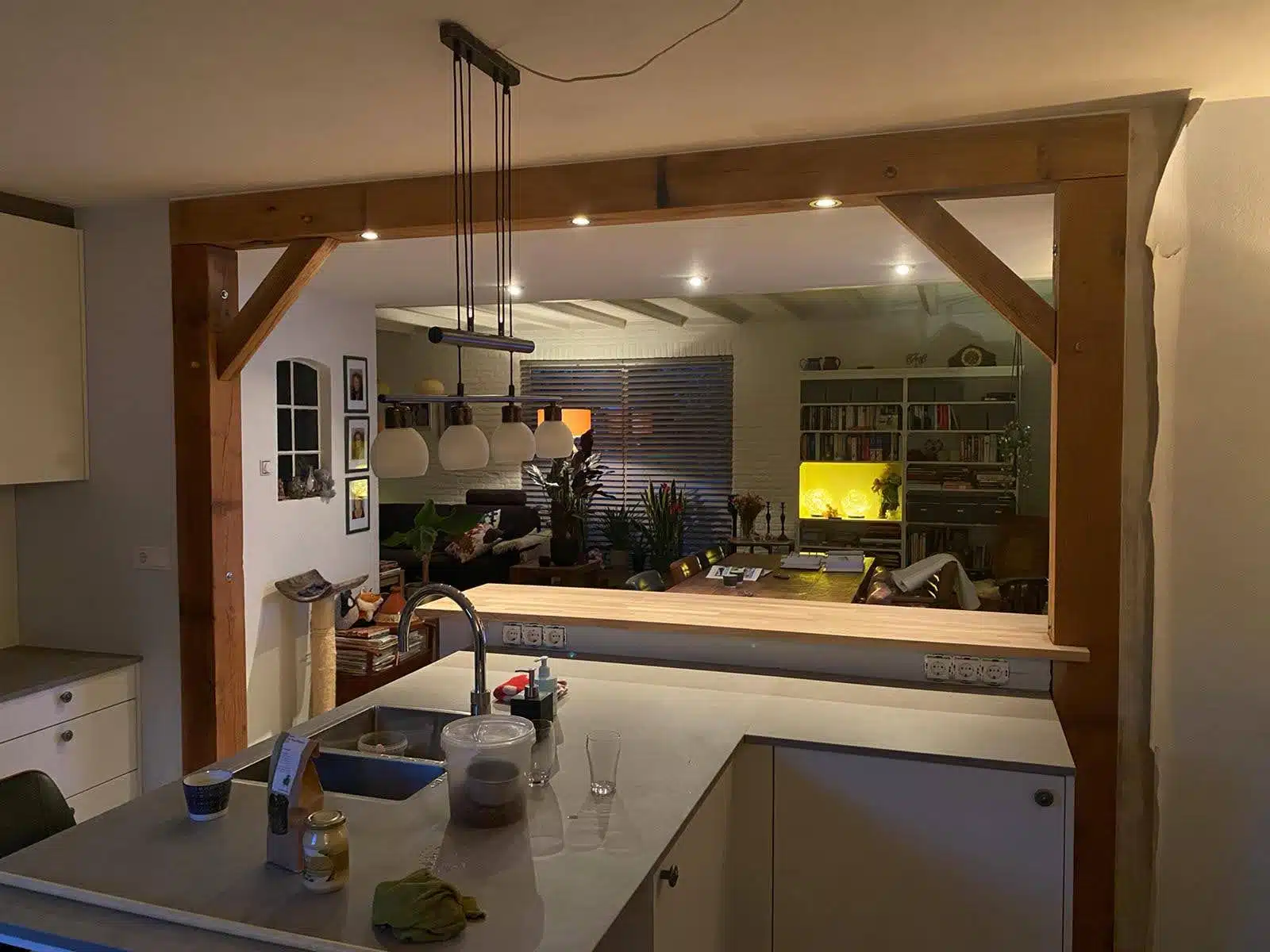 Om meer licht in de woonkamer te krijgen wilde de klant graag de wand tussen de keuken en de woonkamer weg laten halen.