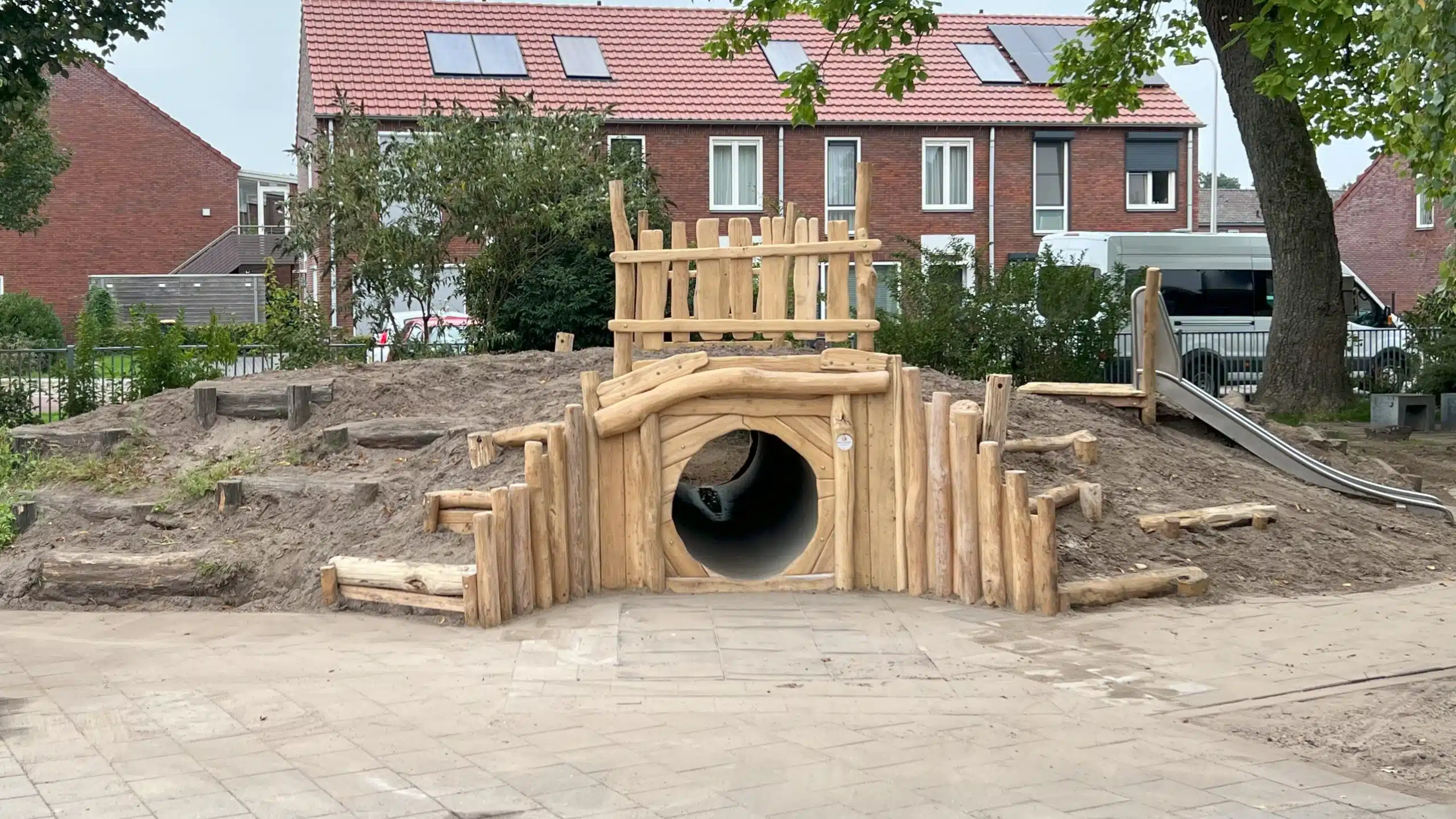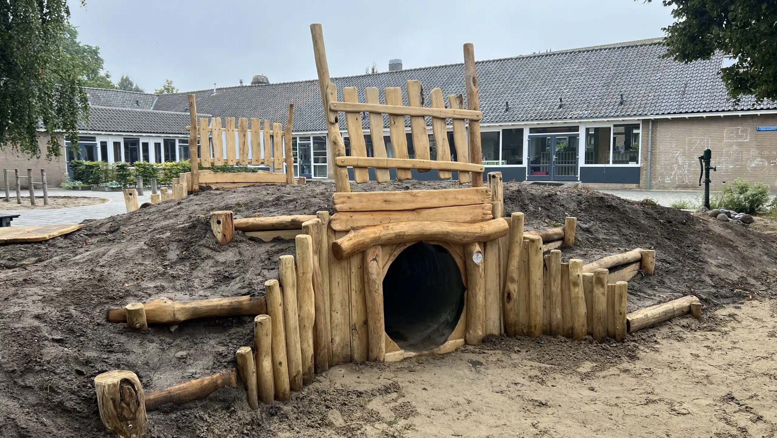 Speelbult met tunnel op schoolplein