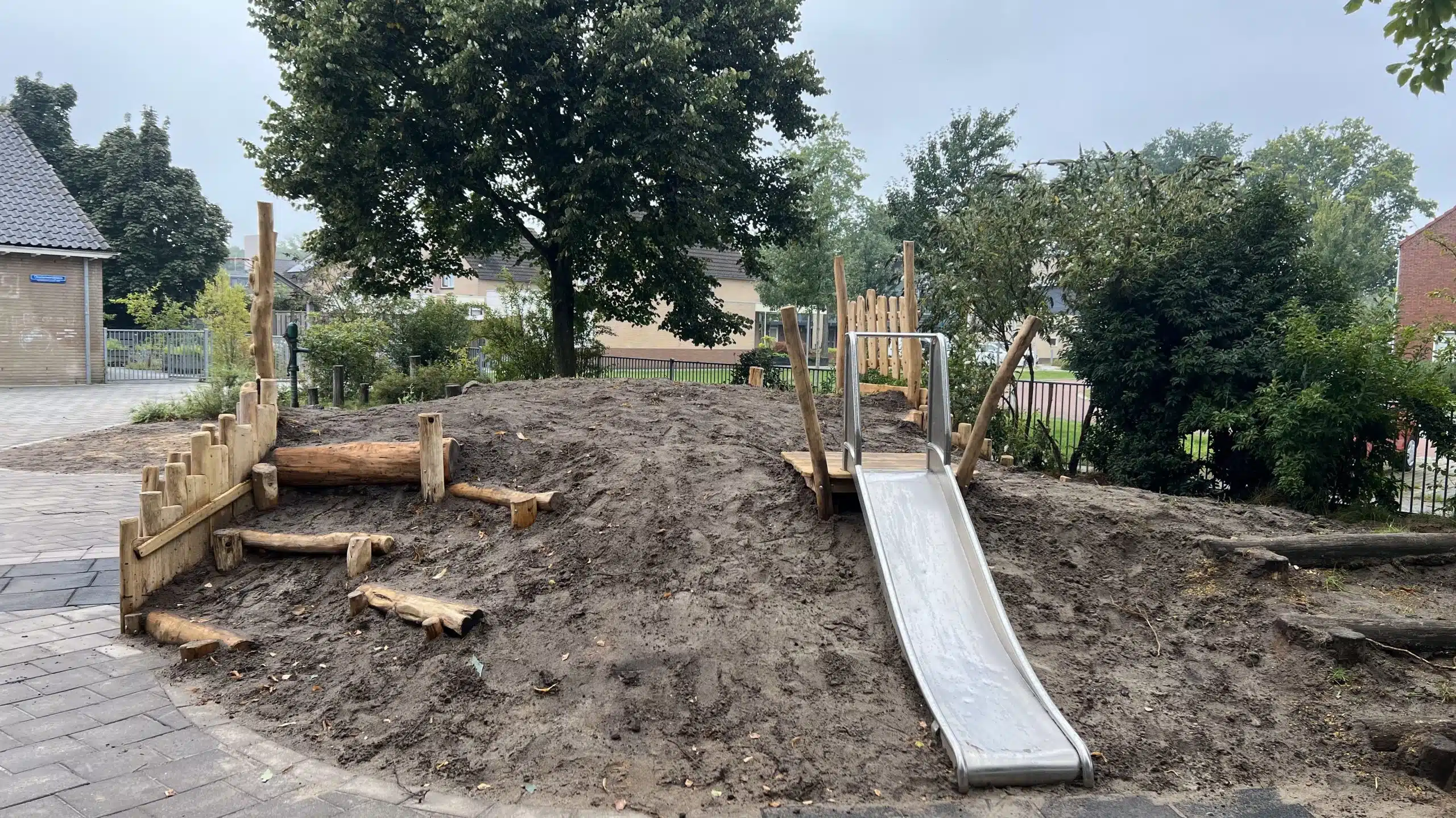 Ook de bestaande glijbaan is daarbij voorzien van een nieuw opstap plateau in een bijpassende stijl.
